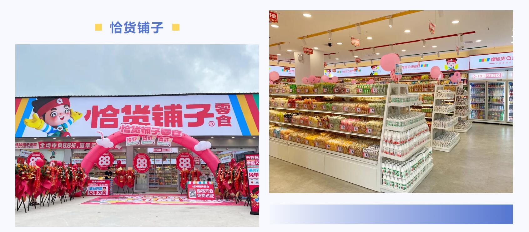 恰货铺子,是湖南味屿齐帆商业管理有限公司旗下的零食量贩品牌,自2018年成立以来,一直秉承“货真价实,超省量贩”的经营理念,专注于打造全新的零食销售模式,凭借其独特的品牌形象和优质的产品,已经在消费者心中树立了良好的口碑。