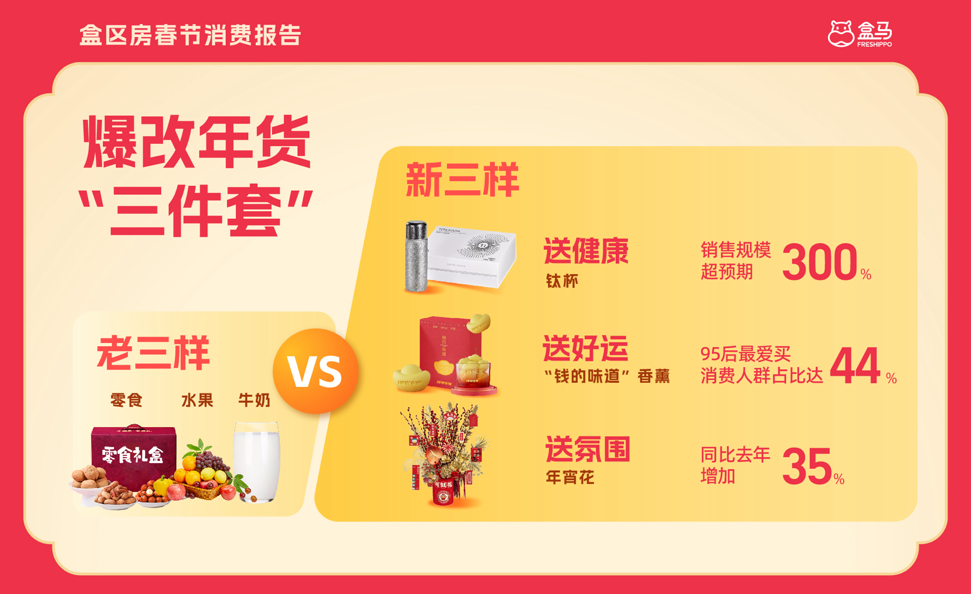 盒马蛇年首个出圈年货当属“钱的味道”、“上上签”两款香薰礼盒。《报告》显示,购买这两款香薰的95后消费者占比达44%。