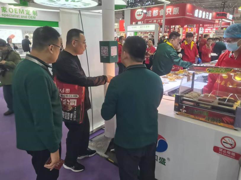 根据现场的工作人员介绍,仅展会开幕首日,新和盛飨食集团展位就接待了来自全国各地的1000余名经销商和餐饮客户,展位上人声鼎沸,洽谈区座无虚席,合作意向登记表很快被填满几十页。
