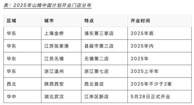山姆中国的扩张速度正创造历史记录。2025年原计划开设8家新店,但实际进度可能更快。仅目前公开信息显示,2025年至少6家新店已敲定:上海浦东金桥店、温州店、西安两家店、张家港店和无锡店。