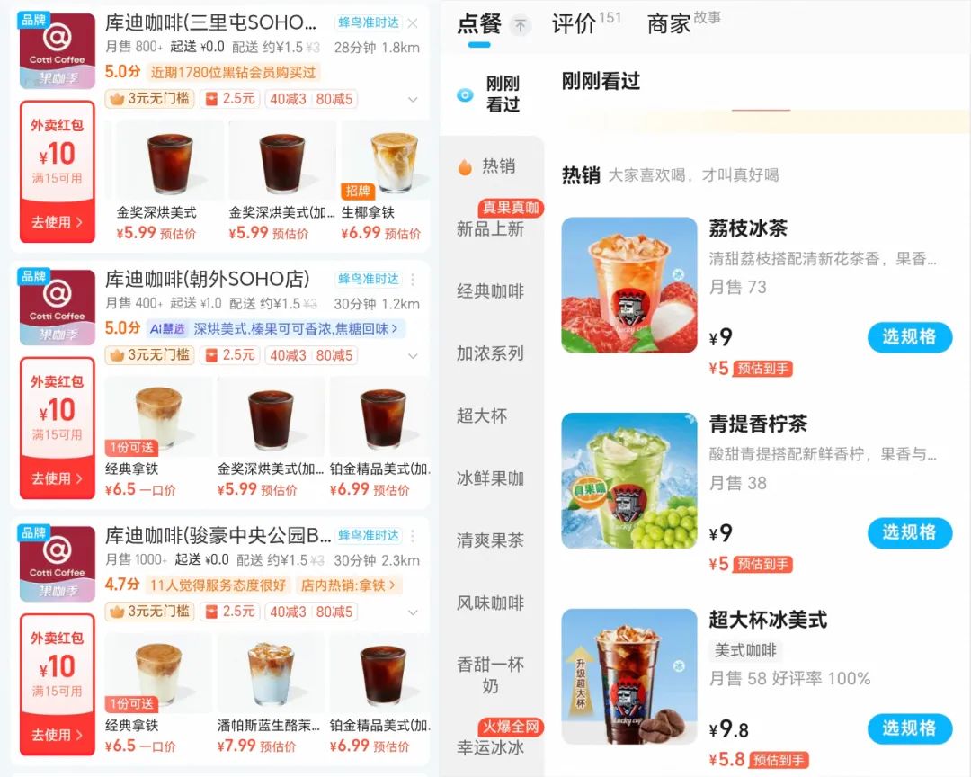 外卖平台补贴战火浇灌下,库迪3.9元咖啡单日销量暴涨10倍,幸运咖杀入6元区间