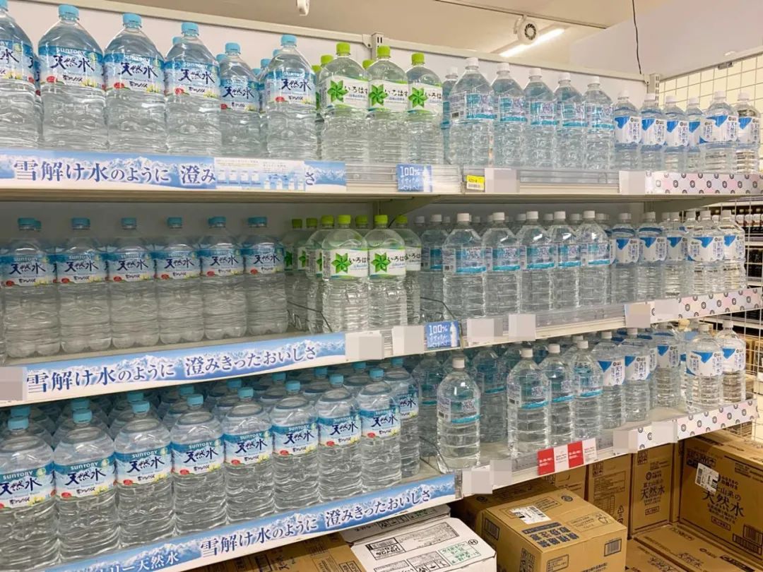 同样是三得利天然水,2L瓶装水售价100日元,550mL瓶装水却要108日元。对,没有写错,店员也没标错价格。