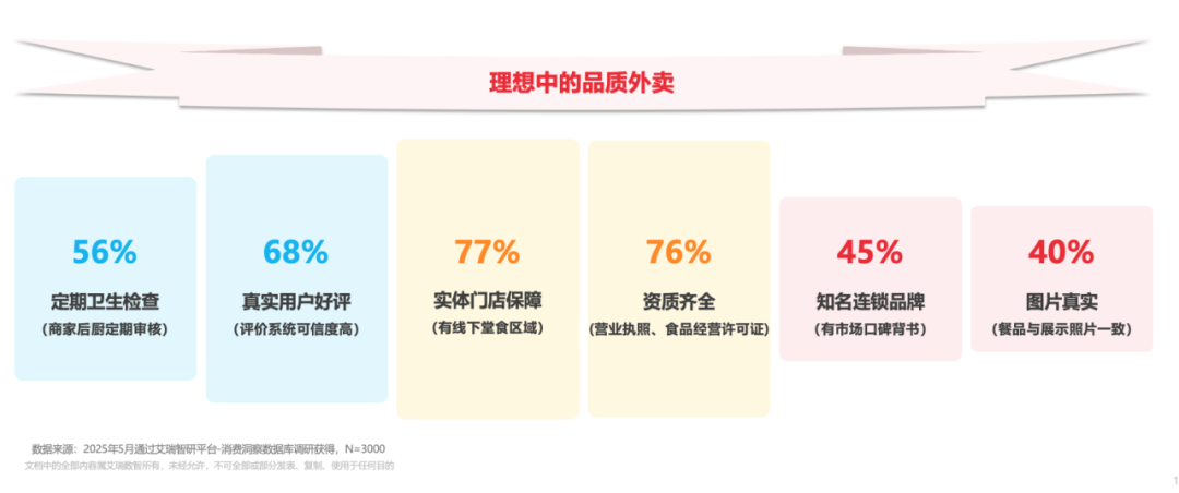 这完美契合了消费者对品质外卖的关键需求。据艾瑞咨询,消费者将“拥有实体门店”列为品质外卖的首要标准,其次是资质齐全。