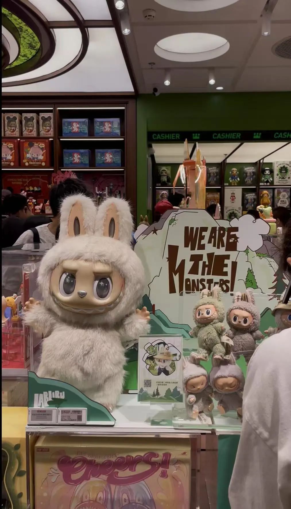 泡泡玛特门店里的LABUBU搪胶毛绒公仔。记者摄。