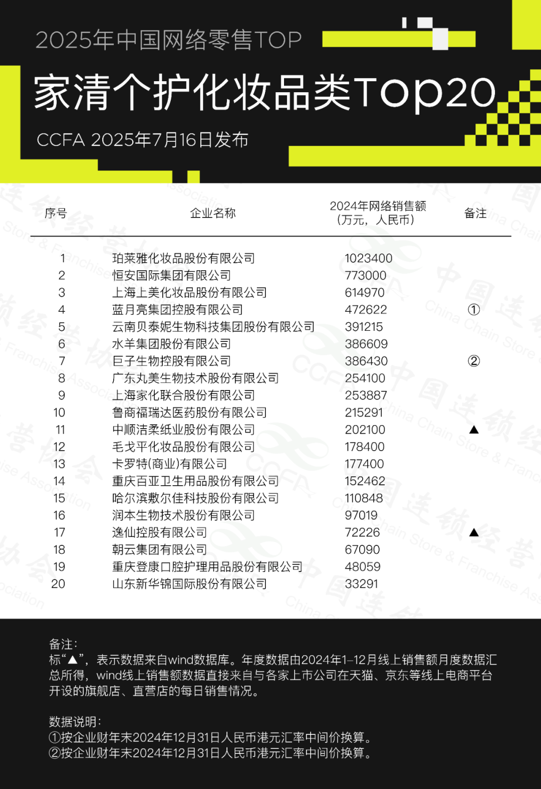 ● 家清个护化妆品类增长最“快”:Top20企业中,65%实现两位数及以上增速,成为增长引擎;