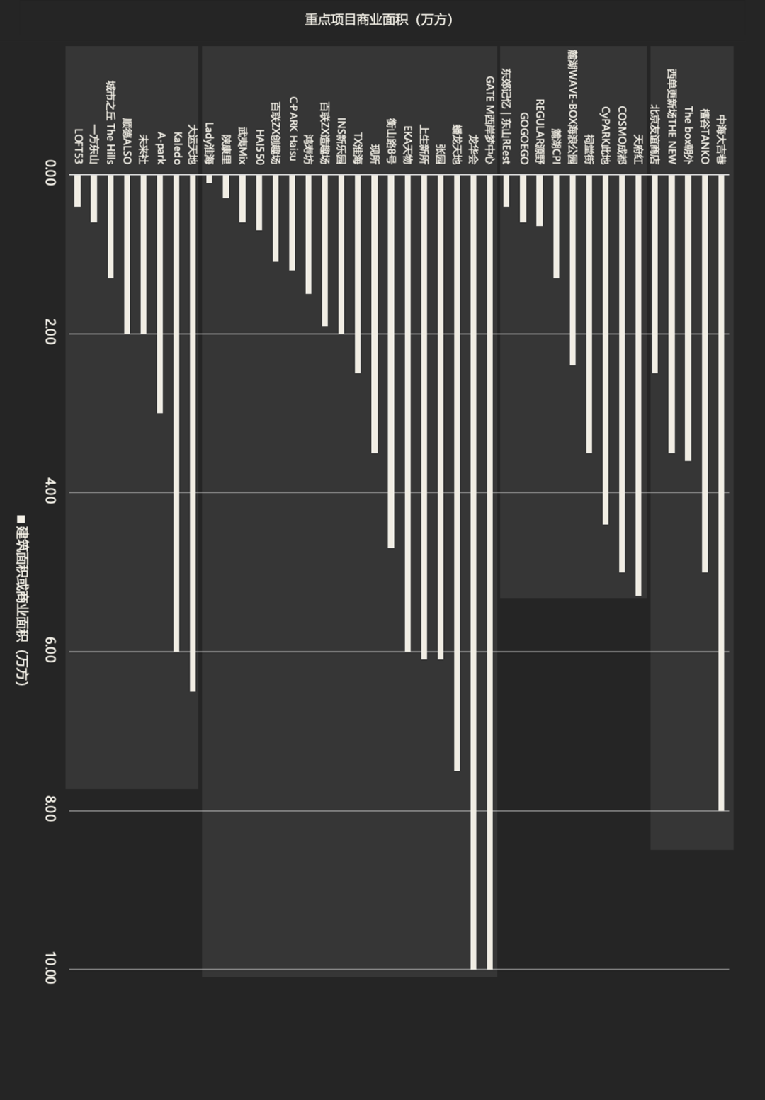 同时,市场上也有城市近郊的、强目的地属性的项目,如蟠龙天地、龙华会、GATE M西岸梦中心等,体量在10万平米量级。