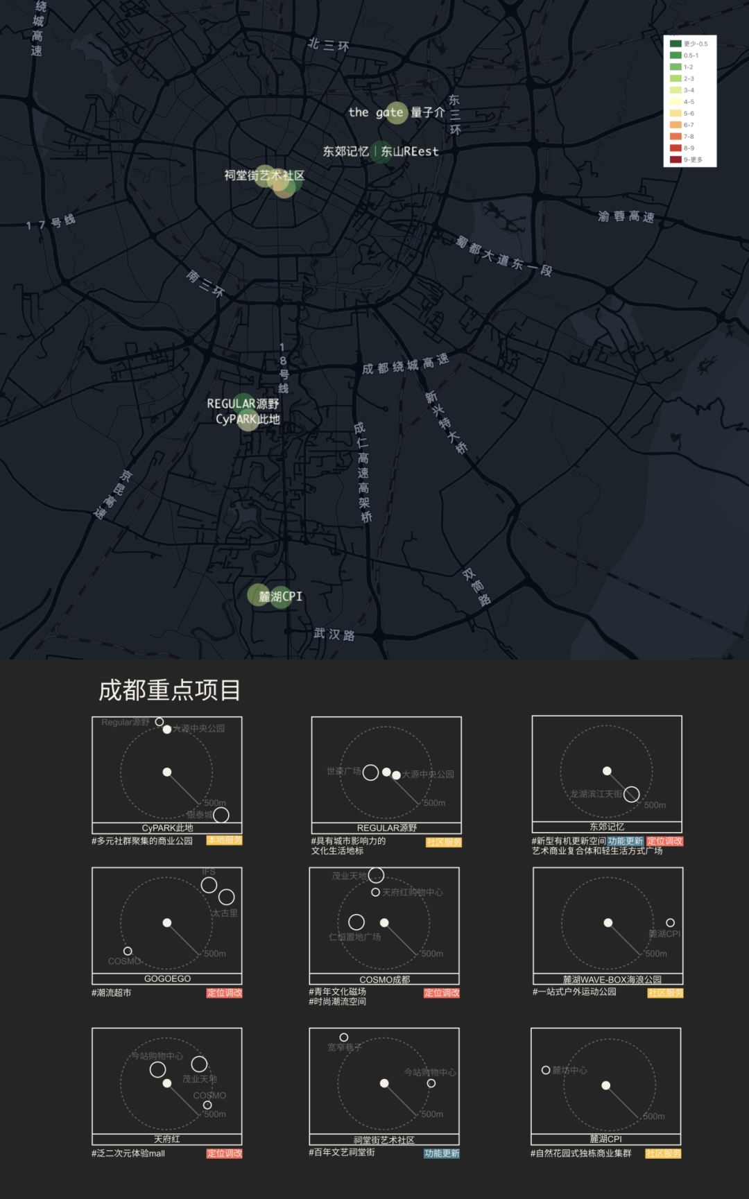 从空间形态和区位选址的角度,成都的非标商业项目有从核心商圈向公园、街道、社区渗透的特征。