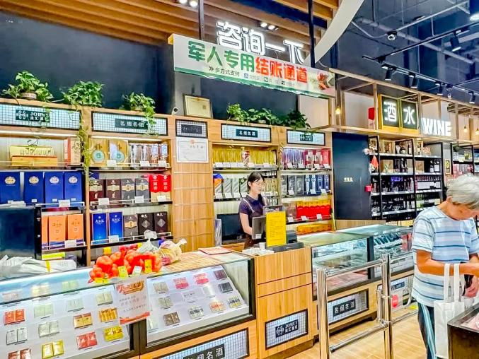除了实惠的价格,超市还提供暖意满满的专属服务。线下门店开通军人专用结账通道,并配有协助导购服务。对于驻地部队,线上购物平台订单满2000元可免除运费,商品次日直达。