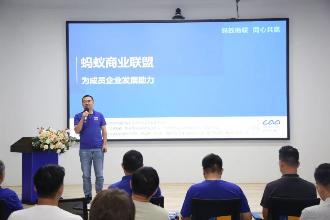 蚂蚁商联总经理郑超在会上详细介绍了联盟的发展历程与核心赋能体系。总经理指出,蚂蚁商联自2017年成立以来,已拥有100家企业,通过自有品牌开发、大数据服务、商学院培训和联合采购四大赋能板块,帮助成员企业降低成本、提升效率、增强竞争力。未来,联盟将持续深化资源整合与创新服务,助力新老成员实现高质量发展。
