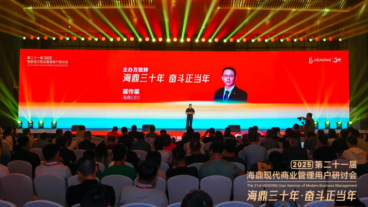 海鼎CEO蒋作梁为大会开场致辞,他认为三⼗年,于历史⻓河不过弹指⼀瞬,但对海鼎⽽⾔,是扎根零售数字化领域踏实耕耘的征程。从1995年HDPOS系统上线到如今与众多伙伴多年携手同行,这份情谊无比珍贵。当下,消费端需求多元、市场端客户迈向全球化、技术端AI渗透全链路,机遇与挑战并存。海鼎将坚守“让商业更有效率”的初⼼,以“技术创新、⽣态协同”应对未来。未来,海鼎定当以客户需求为导向、技术创新为驱动,也期待与所有伙伴携⼿,为中国乃⾄全球商业进步贡献力量!