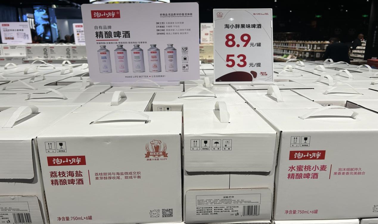 现场,“淘小胖”通过发放优惠券和店员积极推介吸引顾客,店内多款热销商品兼顾质量与份量,自有品牌多数被安排在超市端头的位置,如8.9元/罐的自营果味啤酒、9.9元/瓶的洗手液、护手霜及面膜等。其自营烘焙品牌“桃谷屋”主打现烤面包与披萨,承诺“当日出清”,强化了“新鲜、高性价比”的核心卖点。