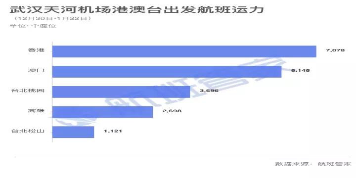 港澳台方面,武汉出港航班量最大的是香港,其次是澳门和台湾。
