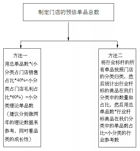 我们根据以上的方法和步骤来预估出各个小分类的单品数,当然还要根据商圈的实际情况做调整。