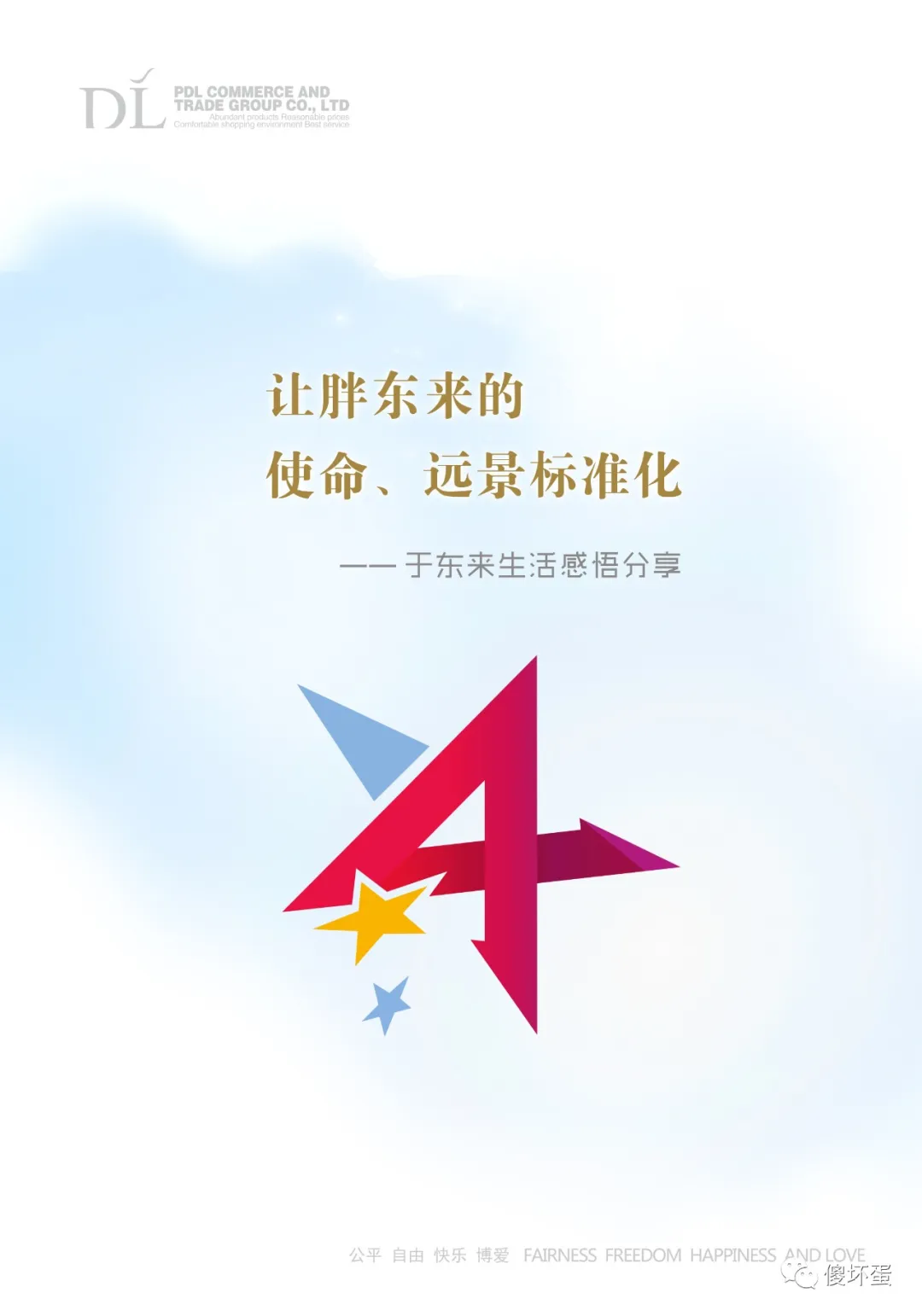 一直到现在,从对部门放权为了成就大家开始,我们也沉淀出了一些东西,感悟出了一些东西,更明白这些好的理念的深度还远远不只是现在这样,所以我就希望可以提炼出一些简单的生活理念,能让人很容易去理解,容易落实。所以我们企业最特别的地方,就是想追求一个好的理念,想让每一个人生活的轻松、自由、阳光和个性。