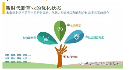 “未来的商业绝对不是单一的购物元素,它是现代大型商业及城市综合体,是多元素的组合。”曹和平用下图作了演示。