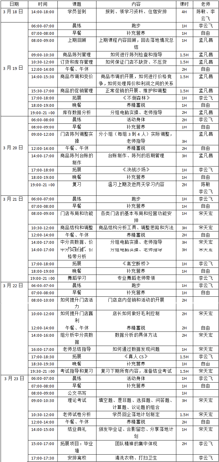 授课对象:营运总监、营运经理、店长、营运主管等相关管理人员