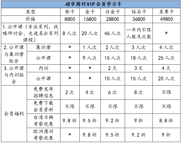 针对业态:连锁超市、大卖场、社区生活超市、加强型生鲜超市授课对象:连锁超市总经理、生鲜采购总监、生鲜营运总监、生鲜采购经理、生鲜营运经理、各科科长等相关人员