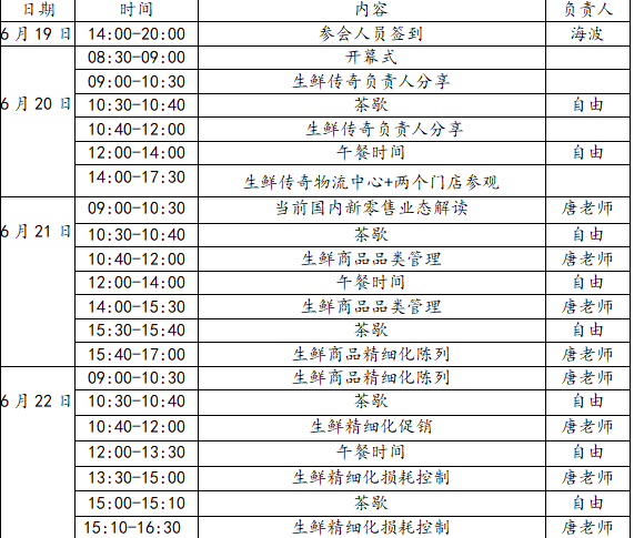 门店、物流中心参观讲解+生鲜传奇经验分享+老师专业授课