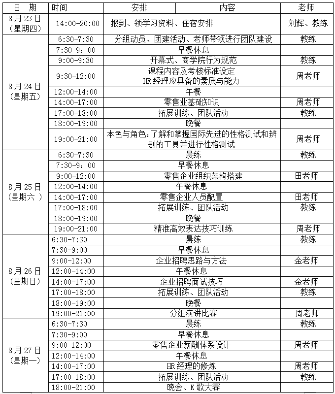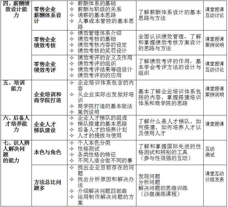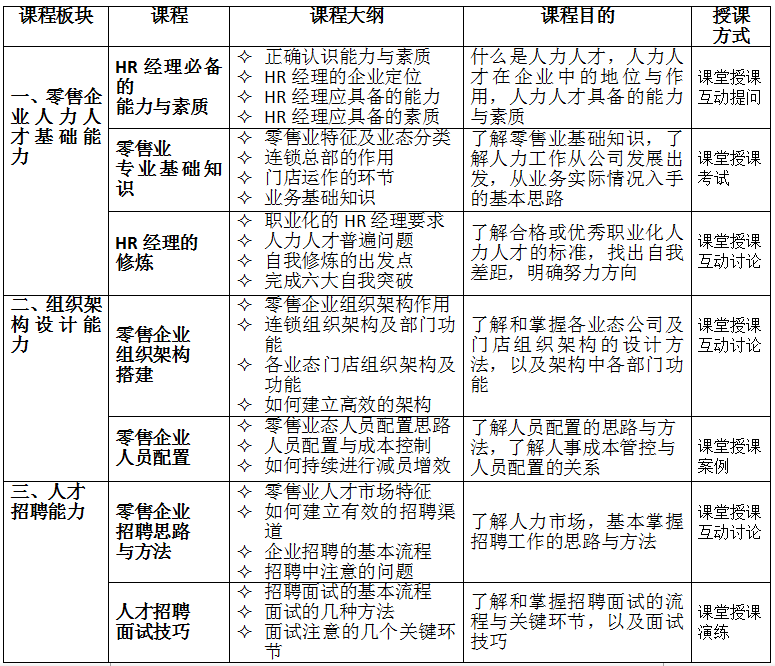 针对业态:标超、大卖场、社区店、便利店等连锁企业授课对象:各零售企业的人力资源部的总监、经理、分管的公司副总等,以及储备人力人才