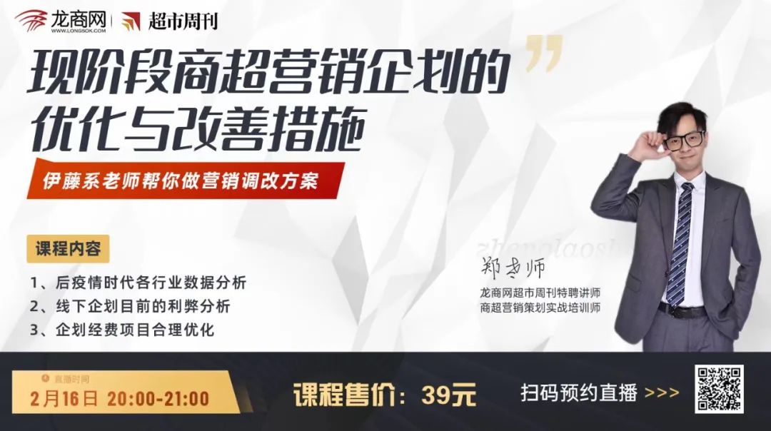 时间:2月16日 20:00 要点:现阶段商超营销企划的优化与改善措施 亮点:特邀原伊藤企业营销主管 内容: 1、现阶段各行业数据分析 2、线下企划目前的利弊分析 3、企划经费项目合理优化 提示:线上畅销年卡免费学习...