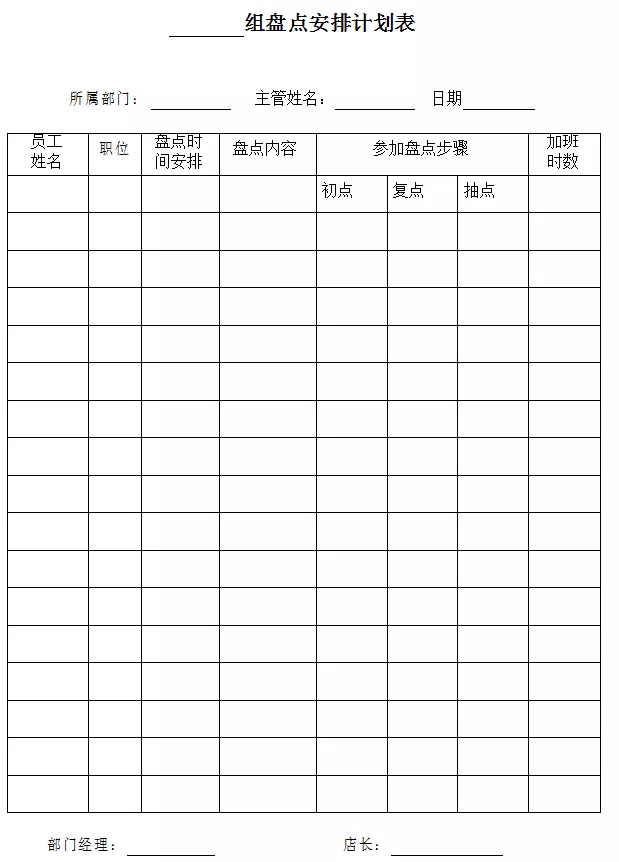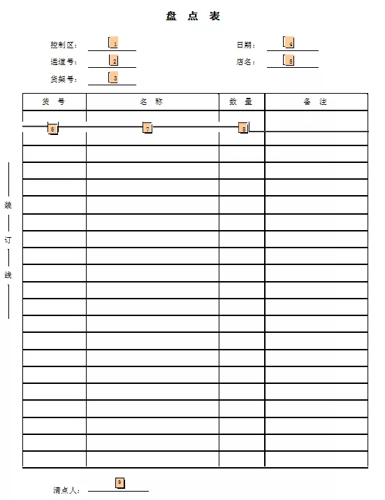 9. 清点人签字 ※ 注:此表共三种,第一种黑色线(初点)、第二种蓝色线(复点)、第三种红色线(抽点)