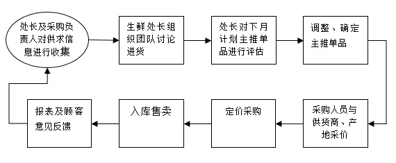 为了精选重点主推单品,永嘉超市生鲜处在采购流程上不断创新,改变以往单纯凭经验设定采购品种、凭关系进货的套路,采取了主动收集供求信息,主动与供货商和生鲜产地联系供货的流程创新: