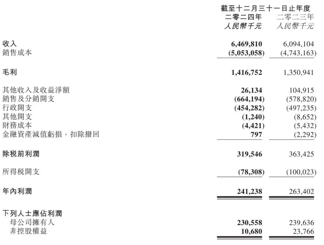 据锅圈2024年财报显示,锅圈全年实现营收为64.70亿元,同比增长6.2%;净利润2.41亿元,同比下降8.4%;核心经营利润3.11亿元,同比增加3.1%;毛利为14.17亿元,同比增长4.9%,毛利率为21.9%。