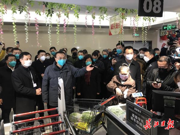 1月27日中午,李克强总理到武商量贩(武泰闸店)考察物资供应情况。