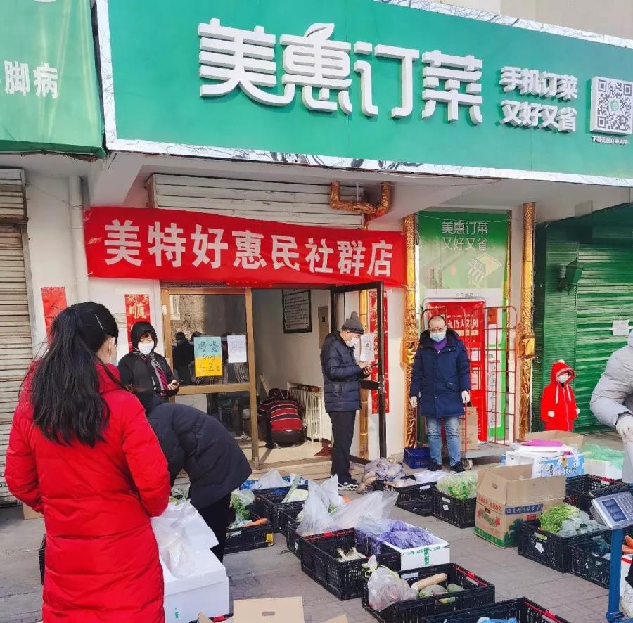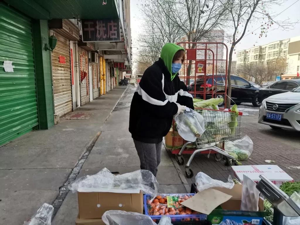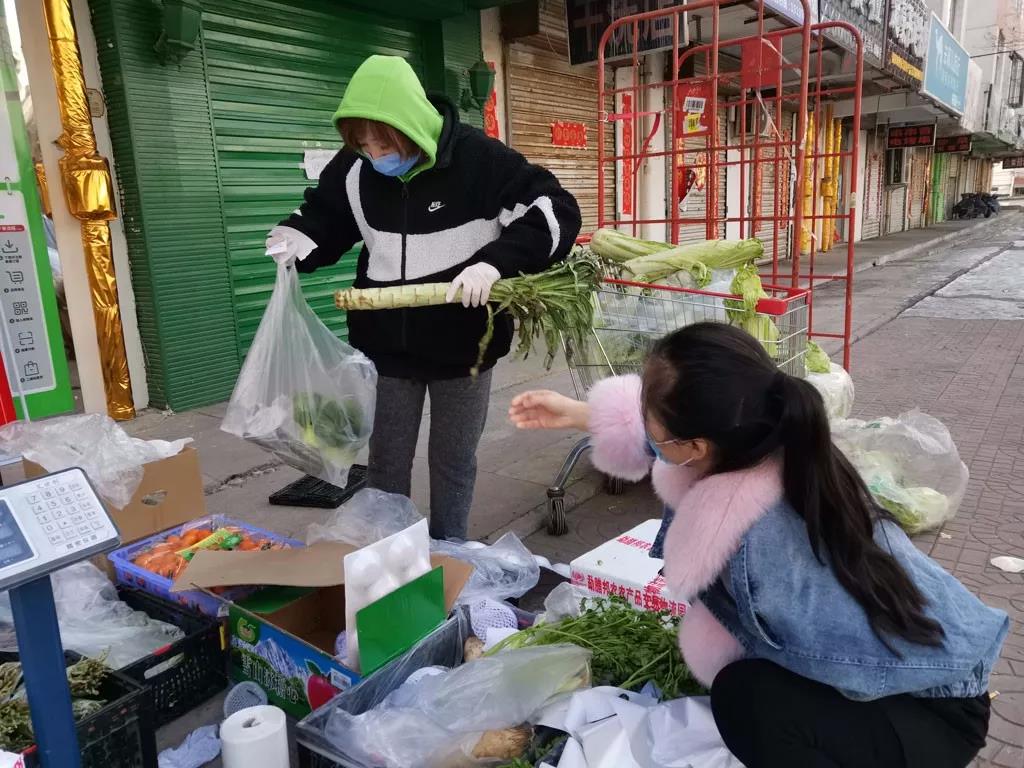 为了减少顾客聚集被传染的风险,美惠订菜白云小区店将商品暂时放在店门外销售,寒冷的天气下,他们经常一站就是一整天,给顾客装菜的时候经常手冻的都搓不开塑料袋.....他们的辛苦顾客看在眼里,他们的付出,顾客放在心上,一句“阿姨给你暖暖手”,是最好的证明!