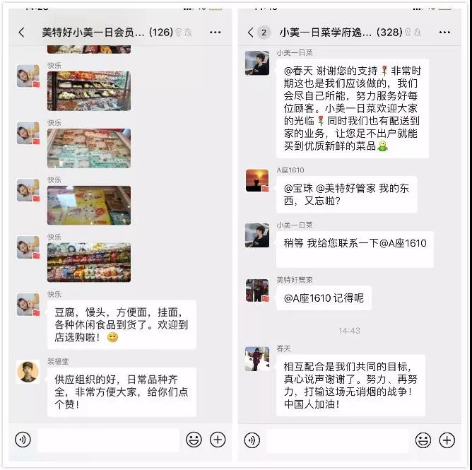 新型冠状病毒感染的肺炎疫情下,所有企业延迟开工,餐馆停业,小区封锁,民生商品供不应求,百姓生活受到影响,当此艰难之际,美特好·全球蛙旗下的小美一日菜打出了春节不打烊的口号,持续每天供应新鲜食材,此外还新增口罩、消毒水等防护用品,让附近居民不仅能买到新鲜蔬菜,还能第一时间买消杀用品,成为了社区居民在特殊时期的生活依靠。