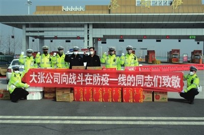 大张党委书记乔紫升带领公司先进党员下基层慰问坚守岗位的大张员工,以及奋战在抗击疫情一线的医护人员和执勤交通民警,给他们送去了温暖。