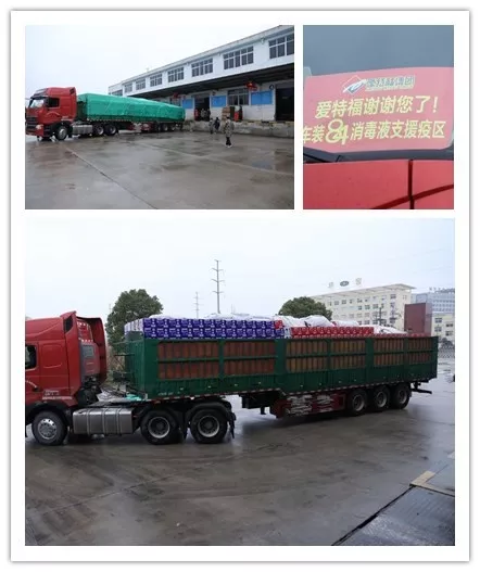 1月26日凌晨12点,蚂蚁商联援助黄商集团的消毒液装完车,连夜驱车近800公里奔赴黄冈
