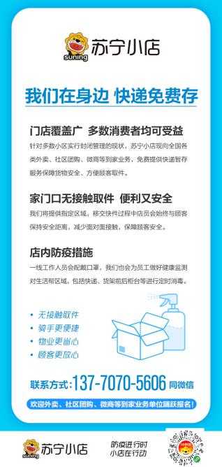 为推出上述服务,苏宁数千家深入社区的门店已开辟专属区域用于快递暂存,快递货架也会定时消杀;同时,在快件暂存和配送中,工作人员也做好每日健康监测,并全程佩戴口罩、保持安全距离。