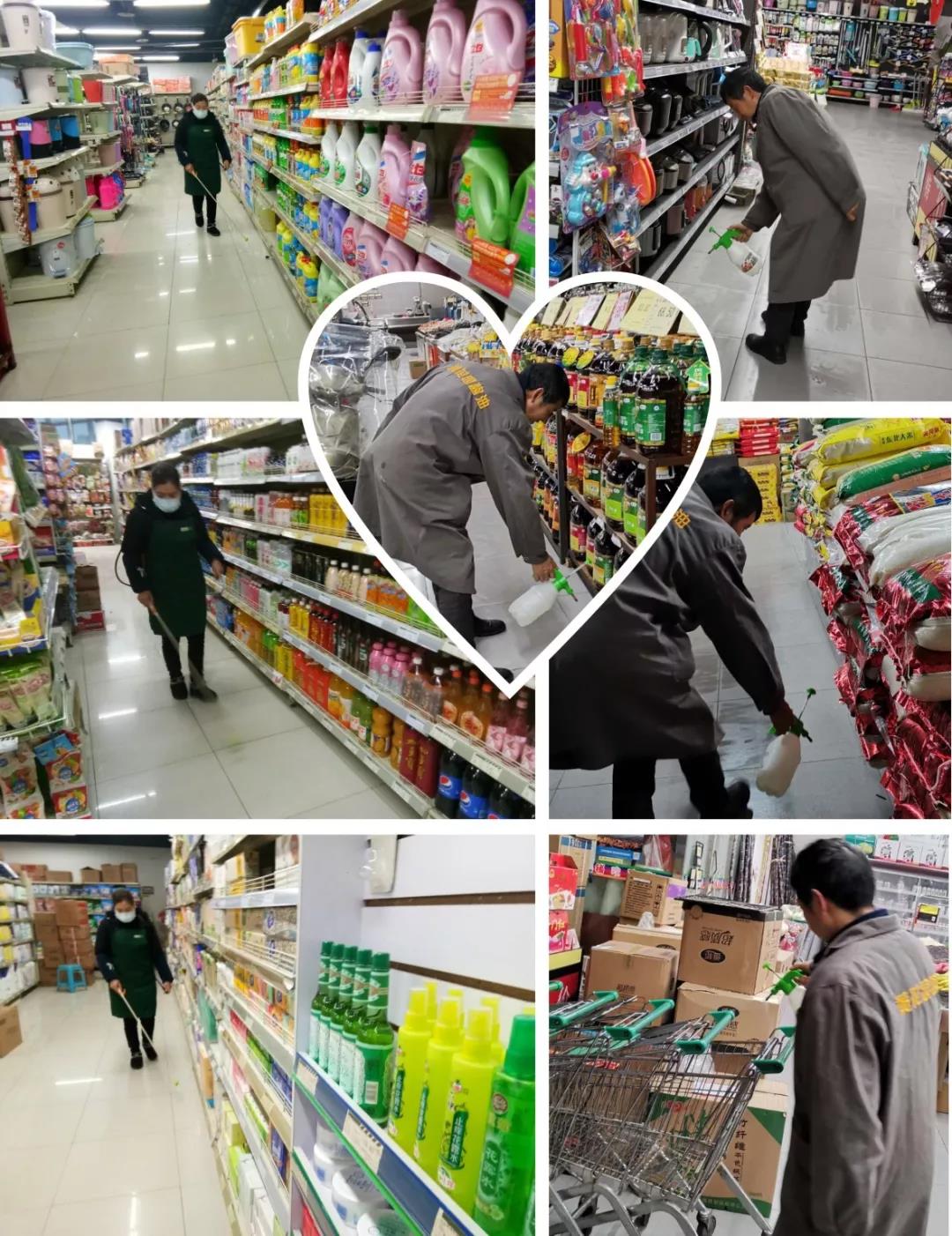风之彩超市每天定时对卖场的公共区域重点消毒,收银区、过道、电梯处、购物车及购物篮、商品陈列区域设施进行消毒水擦抹处理,对垃圾放置处、空调通风口处等重点部位加大清洁力度和消杀频次。