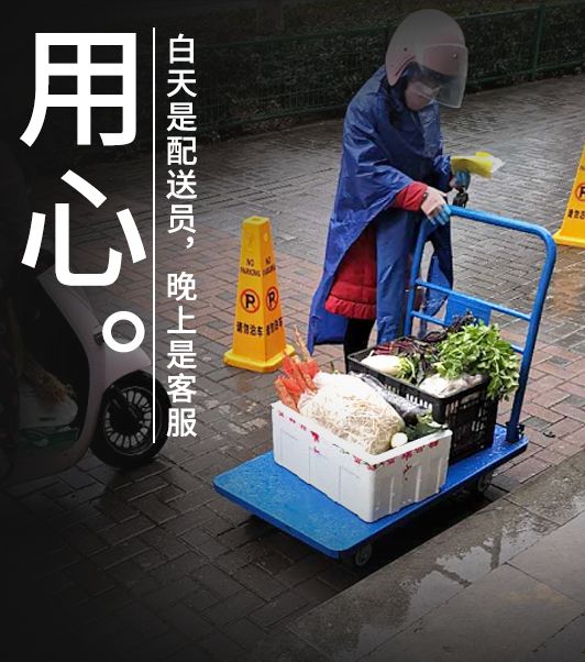小区封闭管理之后,我们也当起了配送小哥,小拖车、电动车、手推车就是我们最好的送货工具。只要每天能保证顾客的一蔬一饭,辛苦也觉得欣慰。