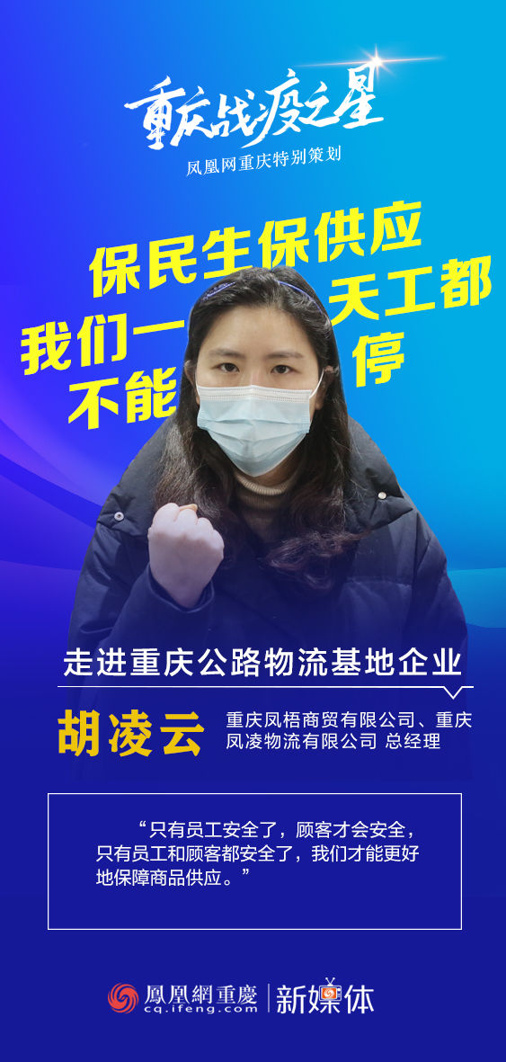 “重庆市、巴南区及物流基地公司的各位领导都很关心和支持我们的工作,疫情防控期间多次来凤凌物流中心调研、慰问。”3月11日,在位于巴南区的重庆公路物流基地,重庆凤梧商贸有限公司、重庆凤凌物流有限公司总经理胡凌云说,“我们也一心想把民生保供工作做好,不能有一丝松懈,疫情期间,一天工都不能停!”