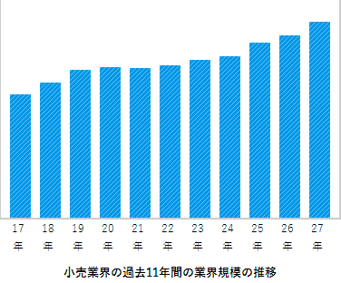 通过观察零售业规模的发展,能够把握其市场的大致现状和动向。