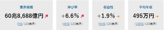 编者按:这是日本零售业的动向,现状,市场占有率,销售额,纯利润,营业年限,年平均收入等的排名。通过追踪对象企业的过去业绩能够了解到零售业整体的现状和动向,趋势。 行业规模:60兆8688亿日元(第5/123个行业) 增长率:+6.6%(第46/123个行业) 收益...