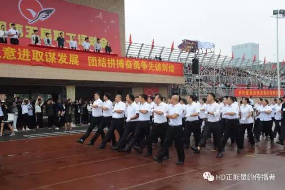 随后,38各个方队融成一片,用梦想照亮现实,用希望点燃青春,2000余名员工兴高采烈地坐在看台上,挥舞着彩球,欣赏着表演。