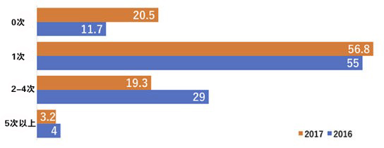关于再次配送,在日本没有经历过的人相比于去年增加了将近一倍,2-4次的从去年的29%降到了19.3%。
