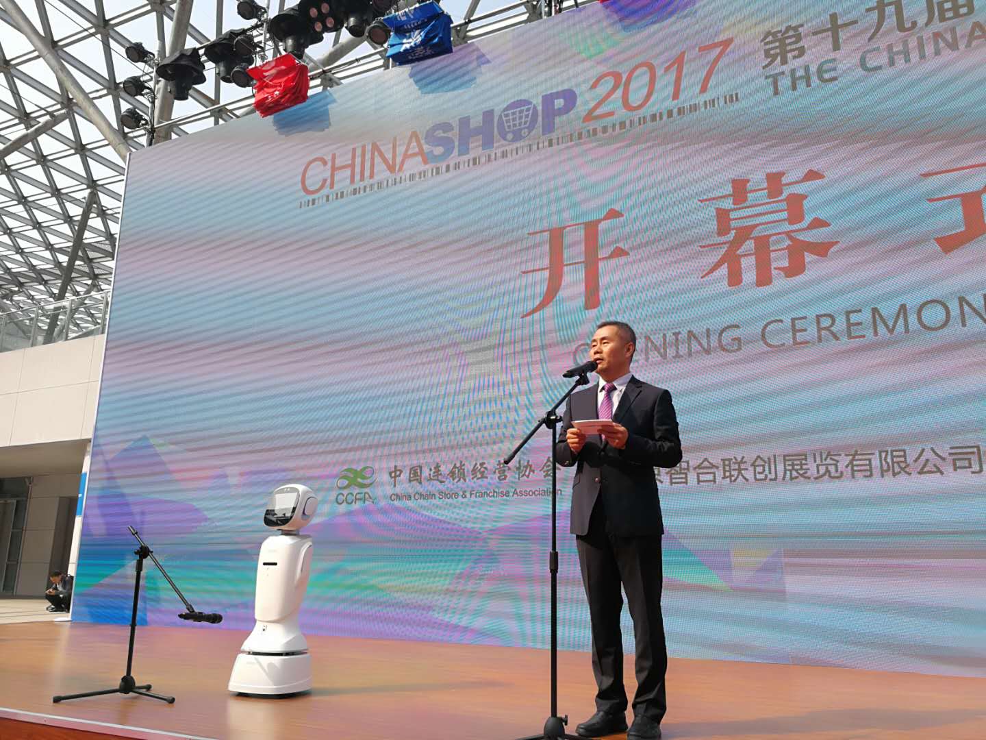 CHINASHOP2017第十九届中国零售业博览会开幕式开始,监事会主席,创会会长郭戈平,裴亮会长,家家悦王培桓,步步高王填,王府井郑万河,华润洪杰,7天连锁孙坚,全聚德邢颖,超市发李燕川等协会副会长成员,理事会成员出席开幕式。