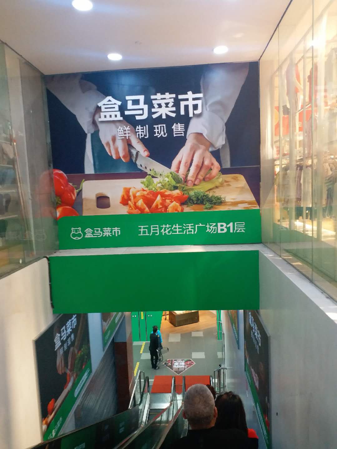 龙商网记者上海报道:3月28日开业的盒马首家菜市,位于上海五月花广场,商圈整体给人一种老上海的感觉,五月花广场整体定位也是社区型生活服务中心。