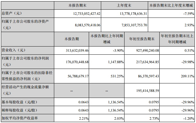报告显示,2019年第三季度北京华联商厦营业收入为313632039.46元,比上年同期减少3.90%;归属于上市公司股东的净利润为176070448.68元,比上年同期增长1147.88%;归属于上市公司股东的扣除非经常性损益的净利润为56788679.17元,比上年同期上涨531.25%。