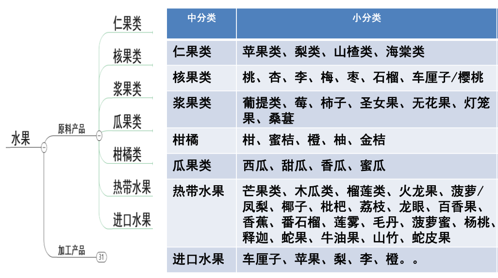 ▲ 水果原料产品的分类