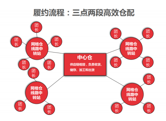 社区团购的核心价值在于提升全链条履约效率,仓储物流能力直接影响平台、消费者、供应商三方利益。经过不断的进化迭代,目前社区团购的仓配模型主要是三点两段模型。