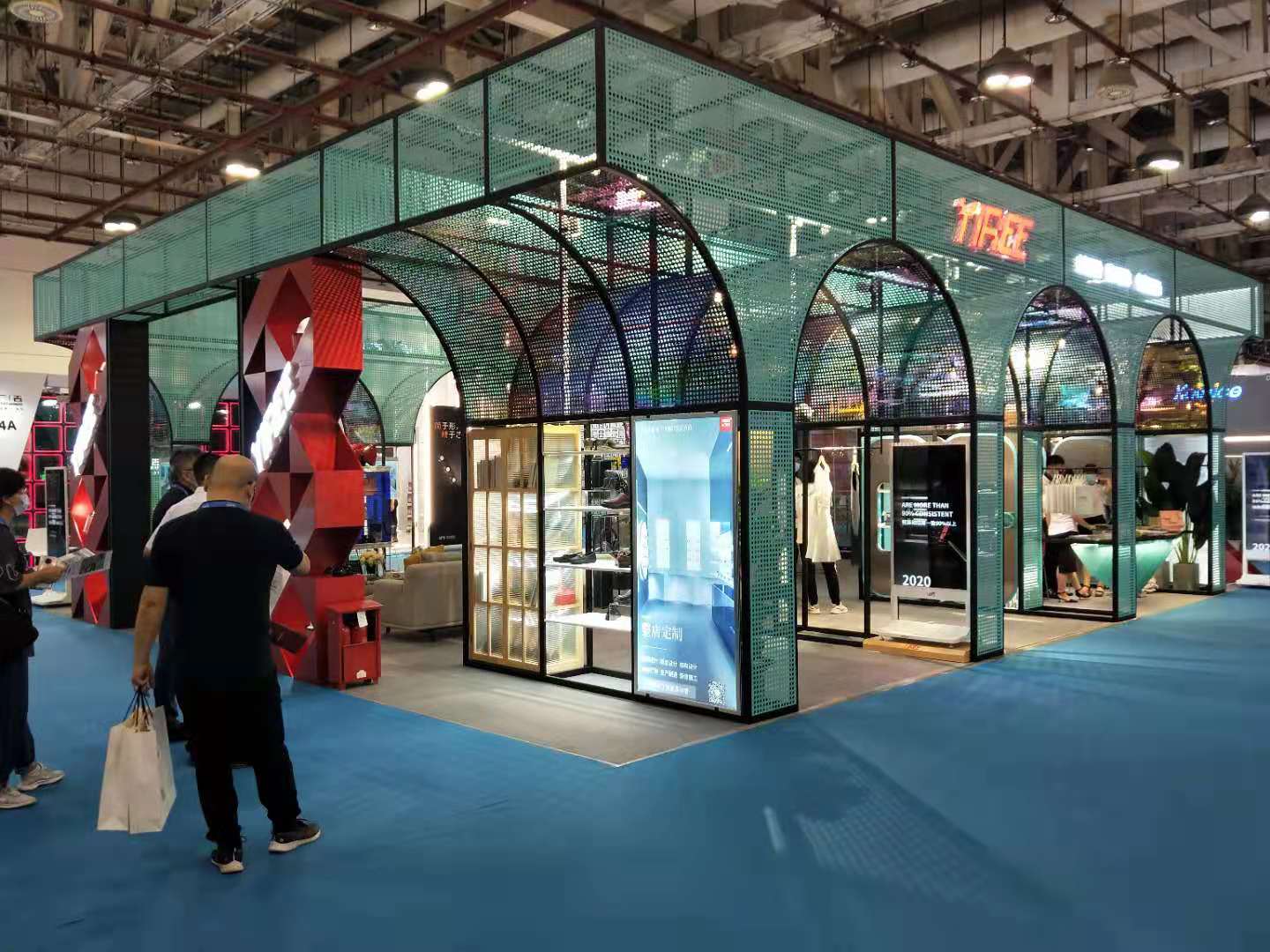 基于需求端的变化,本次展览谊瑞更多是想要传达商业空间设计方面的一些概念:一是通透、空灵的空间感,通过各个拱门形状分割成几个不同的空间,用来展示鞋服、珠宝、化妆品等不同零售形态的展示;二是主要以网红打卡的形式展出,巧妙运用旧报纸、矿泉水瓶来装饰设计,既传达出当下备受推崇的环保理念,又能赋予废品以美感;三是透明橱窗的应用,对外为显示屏,对内则是不影响采光的橱窗,尽可能多地增加与顾客连接的机会。