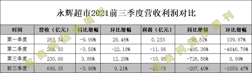 10月29日,永辉超市发布2021年第三季度报告。