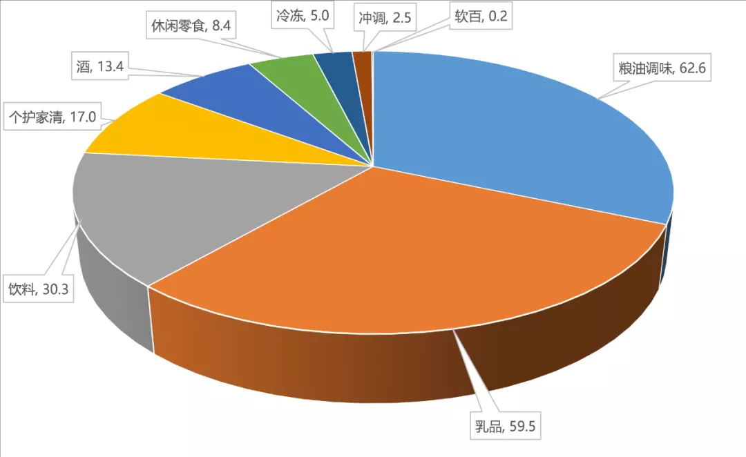 乳品类次之,平均每期上榜59.5品,粮油调味与乳品类合计占比达到61.1%。