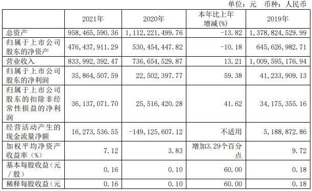 报告显示,2021年宁波中百营收8.34亿元,同比增长13.21%;归属于上市公司股东净利润为3586.5万,同比增长59.38%;归属于上市公司股东的扣除非经常性损益的净利润3613.7亿元,同比增长41.62%。报告提到业绩增长的主要原因是疫情缓解,销售收入增加。