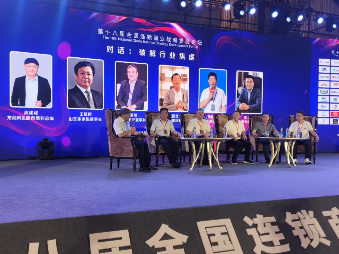 在7月15日上午对话环节,围绕“破解行业焦虑”话题,家家悦集团董事长王培桓、北京超市发董事长李燕川、河南大张集团董事长张国贤、江苏吉麦隆超市董事长周新良、河北惠友集团董事长张健结合企业实际,进行了分享。